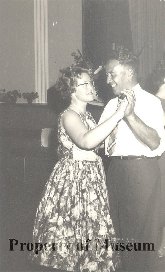 Roydon Textiles' annual social, December 1961 at Otaki Memorial Hall. Tazzy Hakaraia dancing with Heather Watson.