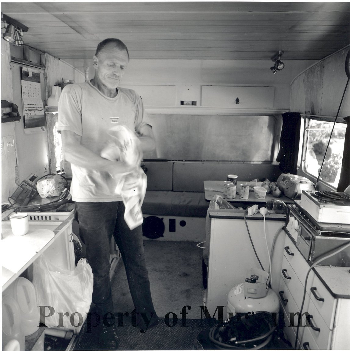 Mike Pilling in his caravan.