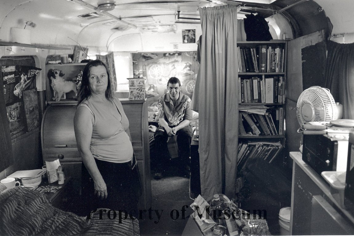 Maree Anderson and Daniel Jetson in Maree's caravan.